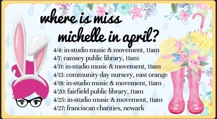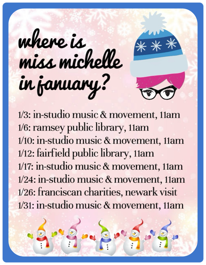 As a degreed librarian, Michelle cannot sing libraries’ praises enough! Since leaving library land full time & establishing MP Music to pursue a new path, she has been very lucky to make music with children in public libraries all around New Jersey!