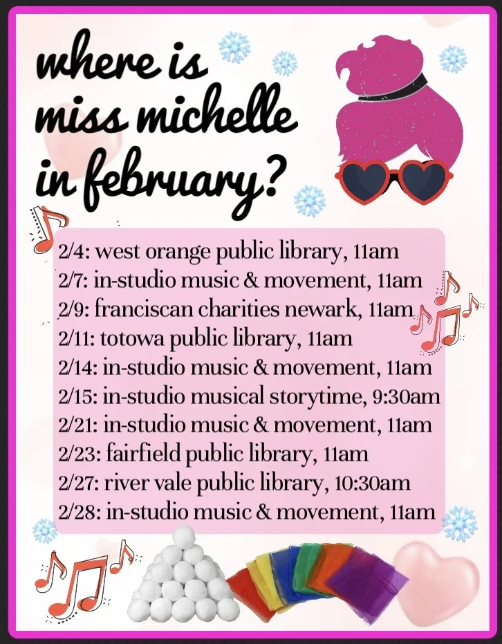 As a degreed librarian, Michelle cannot sing libraries’ praises enough! Since leaving library land full time & establishing MP Music to pursue a new path, she has been very lucky to make music with children in public libraries all around New Jersey!